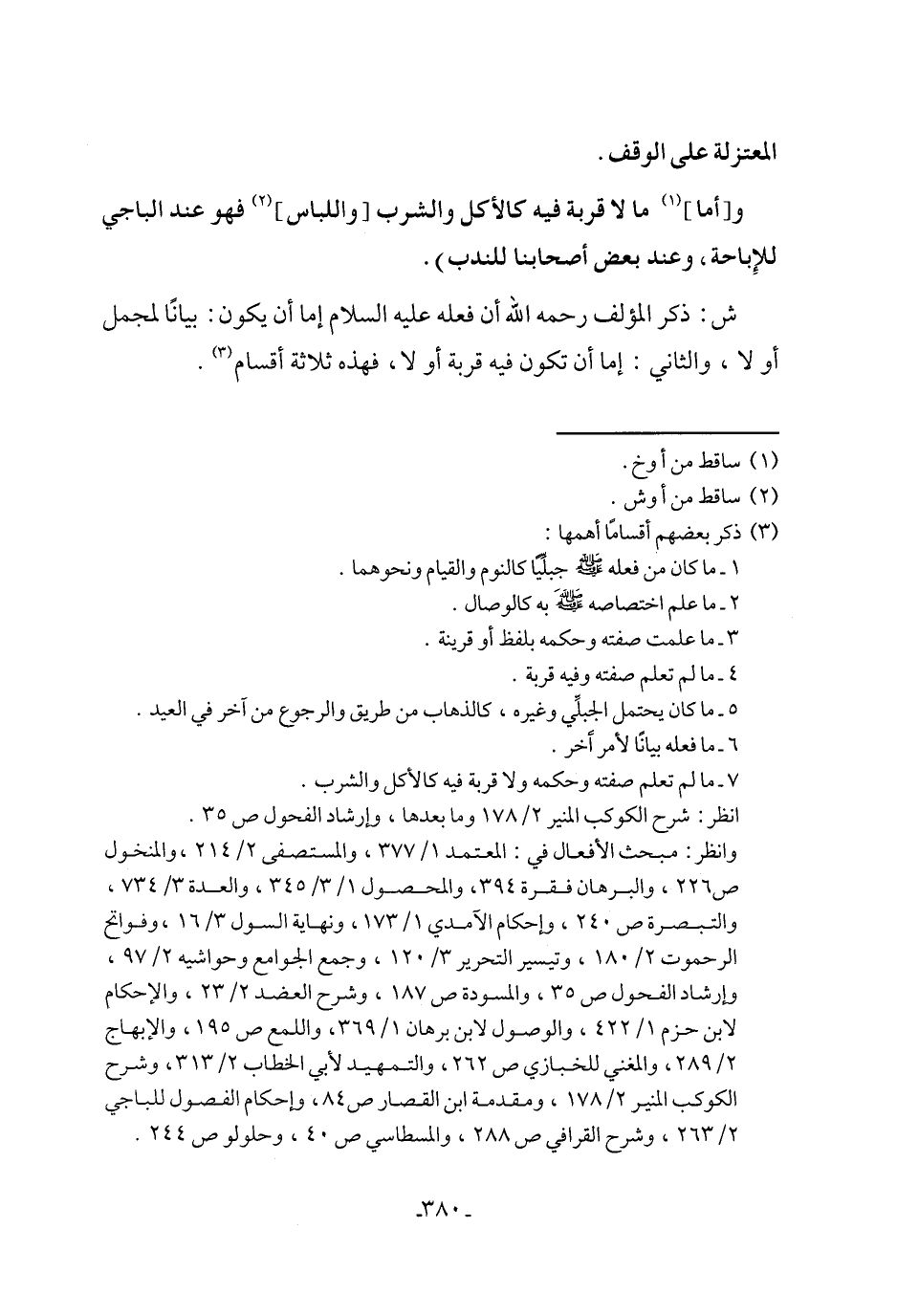 وانظر: مبحث الأفعال في: المعتمد ١/ ٣٧٧، والمستصفى ٢/ ٢١٤، والمنخول ص ٢٢٦، والبرهان فقرة ٣٩٤، والمحصول ١/ ٣/ ٣٤٥، والعدة ٣/ ٧٣٤، والتبصرة ص ٢٤٠، وإحكام الآمدي ١/ ١٧٣، ونهاية السول ٣/ ١٦، وفواتح الرحموت ٢/ ١٨٠، وتيسير التحرير ٣/ ١٢٠، وجمع الجوامع وحواشيه ٢/ ٩٧، وإرشاد الفحول ص ٣٥، والمسودة ص ١٨٧، وشرح العضد ٢/ ٢٣، والإحكام لابن حزم ١/ ٤٢٢، والوصول لابن برهان ١/ ٣٦٩، واللمع ص ١٩٥، والإبهاج ٢/ ٢٨٩، والمغني للخبازي ص ٢٦٢، والتمهيد لأبي الخطاب ٢/ ٣١٣، وشرح الكوكب المنير ٢/ ١٧٨، ومقدمة ابن القصار ص ٨٤، وإحكام الفصول للباجي ٢/ ٢٦٣، وشرح القرافي ص ٢٨٨، والمسطاسي ص ٤٠، وحلولو ص ٢٤٤.