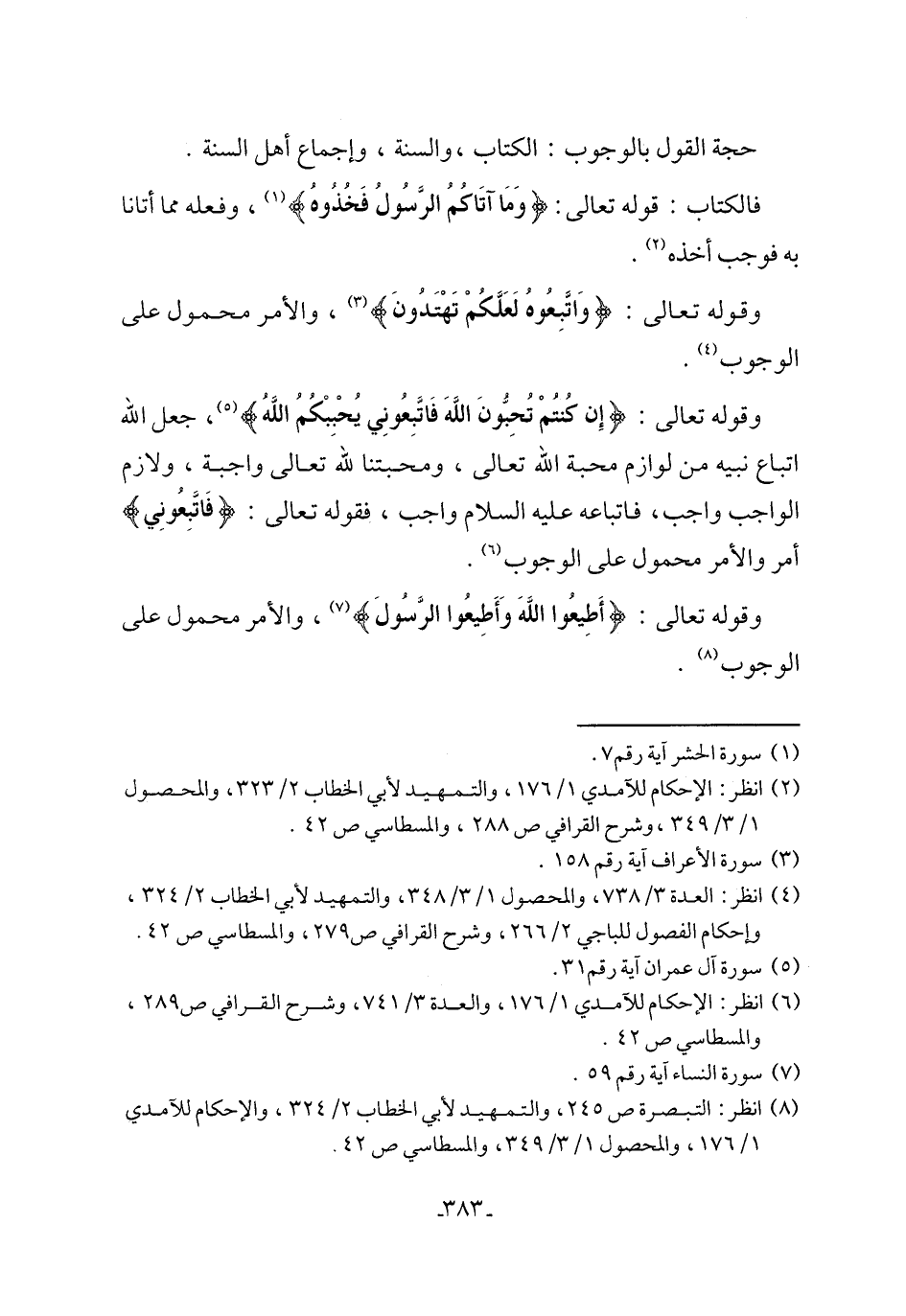 (٨) انظر: التبصرة ص ٢٤٥، والتمهيد لأبي الخطاب ٢/ ٣٢٤، والإحكام للآمدي ١/ ١٧٦، والمحصول ١/ ٣/ ٣٤٩، والمسطاسي ص ٤٢.