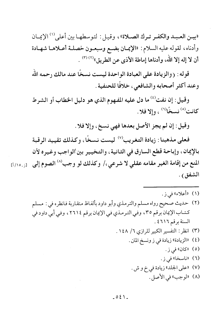 قوله: (والزيادة على العبادة الواحدة ليست نسخًا عند مالك رحمه الله وعند أكثر أصحابه والشافعي، خلافًا للحنفية.