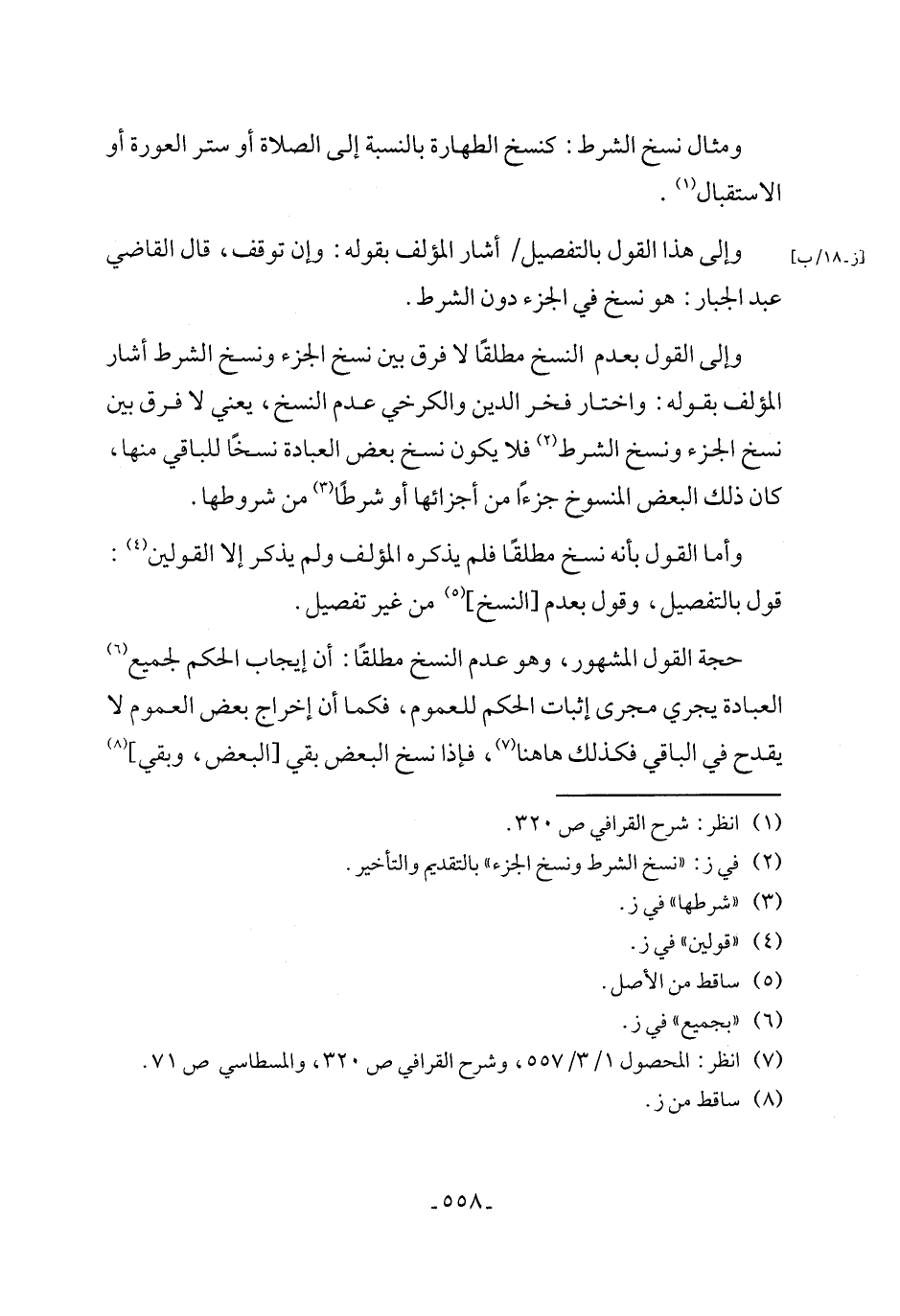 (٢) في ز: "نسخ الشرط ونسخ الجزء" بالتقديم والتأخير.