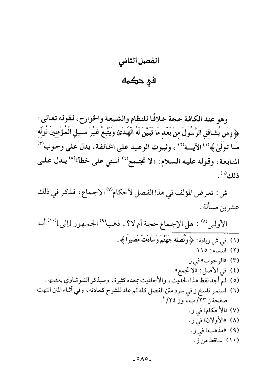 ش: تعرض المؤلف في هذا الفصل لأحكام (٧) الإجماع، فذكر في ذلك عشرين مسألة.