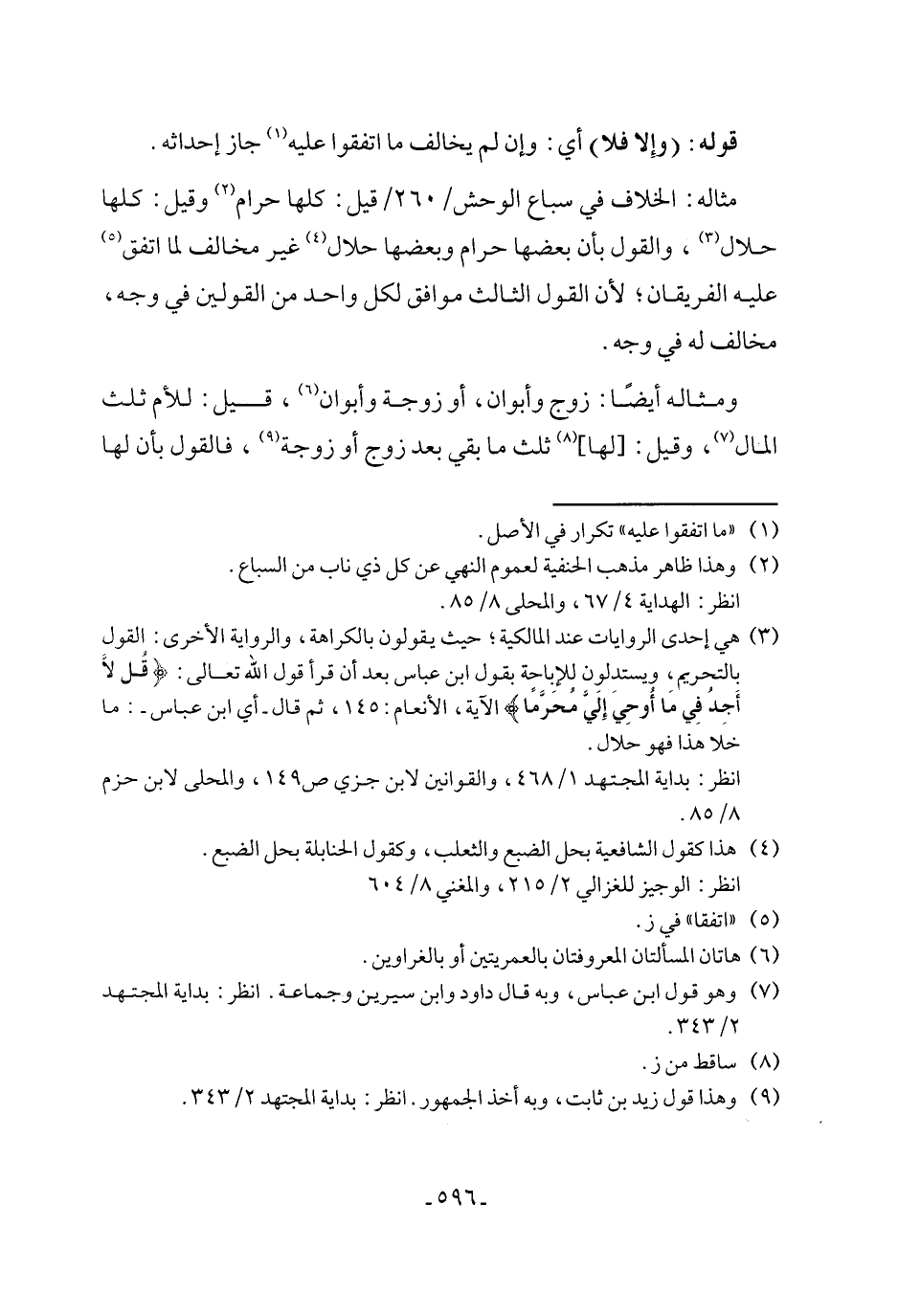 (٣) هي إحدى الروايات عند المالكية؛ حيث يقولون بالكراهة، والرواية الأخرى: القول بالتحريم، ويستدلون للإباحة بقول ابن عباس بعد أن قرأ قول الله تعالى: {قُلْ لَا أَجِدُ فِي مَا أُوحِيَ إِلَيَّ مُحَرَّمًا} الآية، الأنعام: ١٤٥، ثم قال - أي ابن عباس -: ما خلا هذا فهو حلال.