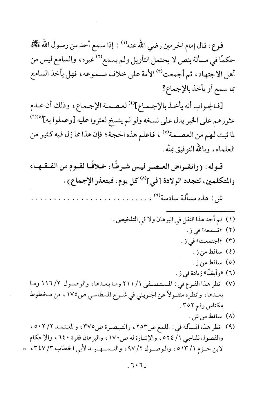 ش: هذه مسألة سادسة (٩)، ................................