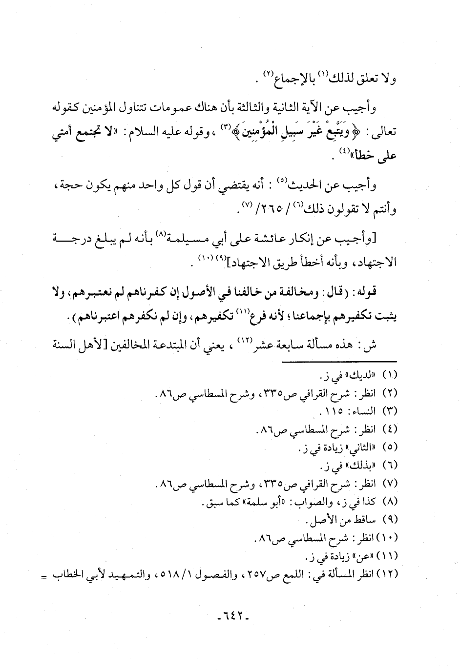 (١٢) انظر المسألة في: اللمع ص ٢٥٧، والفصول ١/ ٥١٨، والتمهيد لأبي الخطاب =