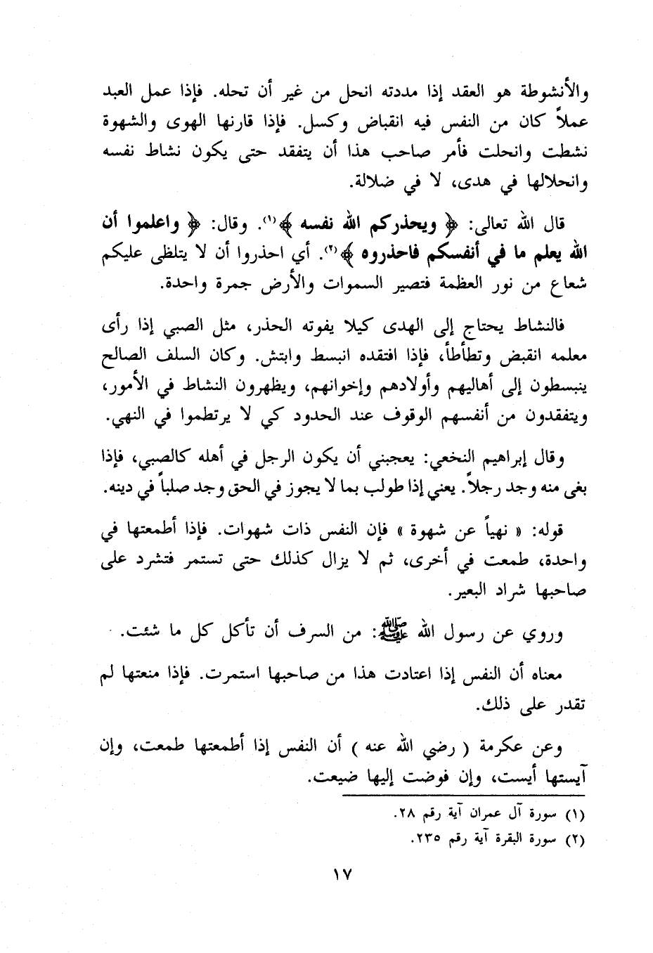 فالنشاط يحْتَاج إِلَى الْهدى كَيْلا يفوتهُ الحذر مثل الصَّبِي إِذا رأى معلمه انقبض وتطأطأ فَإِذا افتقده انبسط وابتش وَكَانَ السّلف الصَّالح ينبسطون إِلَى أَهَالِيهمْ وَأَوْلَادهمْ وإخوانهم ويظهرون النشاط فِي الْأُمُور ويتفقدون من أنفسهم الْوُقُوف عِنْد الْحُدُود كي لَا يرتطموا فِي النَّهْي