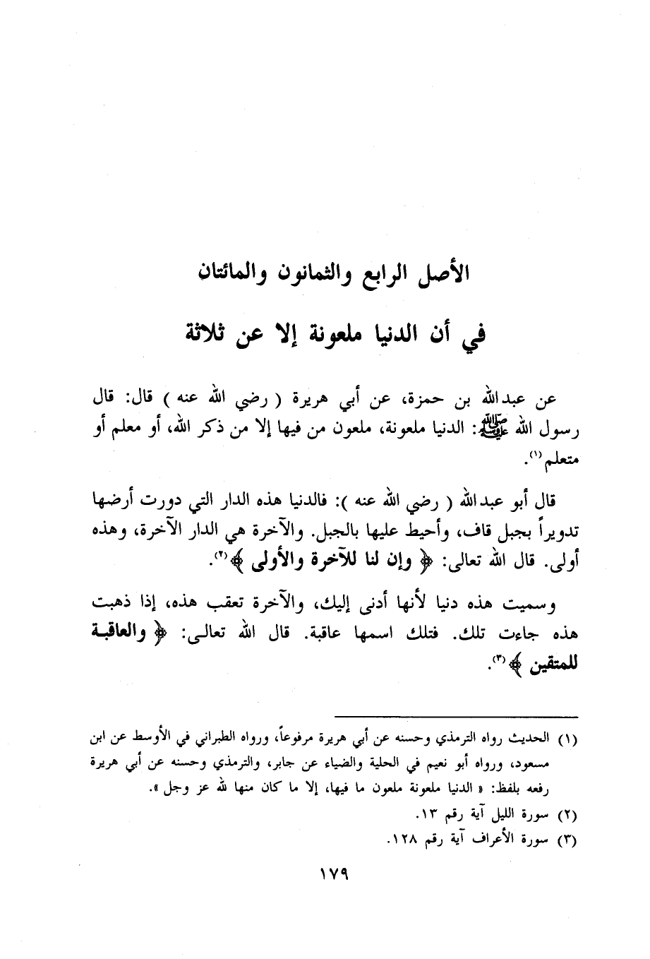 عَن عبد الله بن حَمْزَة عَن أبي هُرَيْرَة رَضِي الله عَنهُ قَالَ قَالَ رَسُول الله صلى الله عَلَيْهِ وَسلم الدُّنْيَا ملعونة مَلْعُون من فِيهَا إِلَّا من ذكر الله أَو معلم أَو متعلم