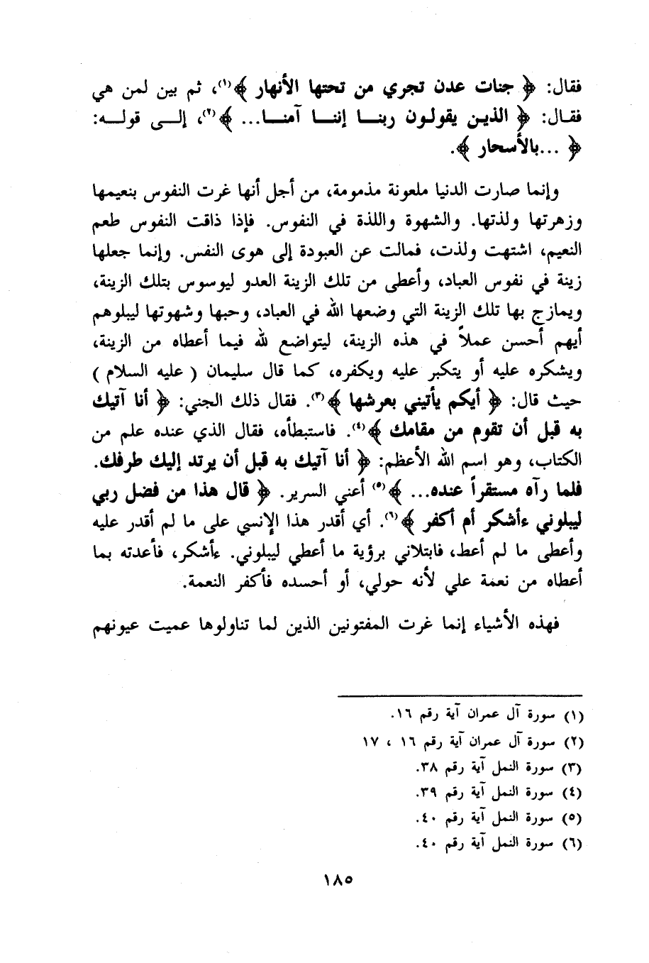 وَإِنَّمَا صَارَت الدُّنْيَا ملعونة مذمومة من أجل أَنَّهَا غرت النُّفُوس بنعيمها وزهرتها ولذتها والشهوة واللذة فِي النُّفُوس فَإِذا ذاقت النُّفُوس طعم النَّعيم اشتهت ولذت فمالت عَن العبودة إِلَى هوى النَّفس وَإِنَّمَا جعلهَا زِينَة فِي نفوس الْعباد وَأعْطى من تِلْكَ الزِّينَة الْعَدو ليوسوس بِتِلْكَ الزِّينَة ويمازج بهَا تِلْكَ الزِّينَة الَّتِي وَضعهَا الله فِي الْعباد وحبها وشهوتها ليبلوهم أَيهمْ أحسن عملا فِي هَذِه الزِّينَة ليتواضع لله فِيمَا أعطَاهُ من الزِّينَة ويشكره عَلَيْهِ أَو يتكبر عَلَيْهِ ويكفره كَمَا قَالَ سُلَيْمَان عَلَيْهِ السَّلَام حَيْثُ قَالَ {أَيّكُم يأتيني بِعَرْشِهَا} فَقَالَ ذَلِك الجني {أَنا آتِيك بِهِ قبل أَن تقوم من مقامك} فاستبطأه فَقَالَ الَّذِي عِنْده علم من الْكتاب وَهُوَ اسْم الله الْأَعْظَم {أَنا آتِيك بِهِ قبل أَن يرْتَد إِلَيْك طرفك فَلَمَّا رَآهُ مُسْتَقرًّا عِنْده} أَعنِي السرير قَالَ هَذَا من فضل رَبِّي لِيَبْلُوَنِي ءأشكر أم أكفر أَي أقدر هَذَا الْإِنْسِي على مَا لم أقدر عَلَيْهِ وَأعْطى مَا لم أعْط فابتلاني بِرُؤْيَة مَا أعْطى لِيَبْلُوَنِي ءأشكر فأعدته بِمَا أعطَاهُ من نعْمَة عَليّ لِأَنَّهُ حَولي أَو أحسده فَأكفر النِّعْمَة