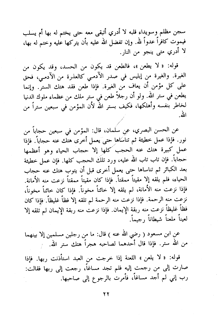 عَن ابْن مَسْعُود رَضِي الله عَنهُ قَالَ مَا من رجلَيْنِ مُسلمين إِلَّا بَينهمَا من الله ستر فَإِذا قَالَ أَحدهمَا لصَاحبه هجرا هتك ستر الله