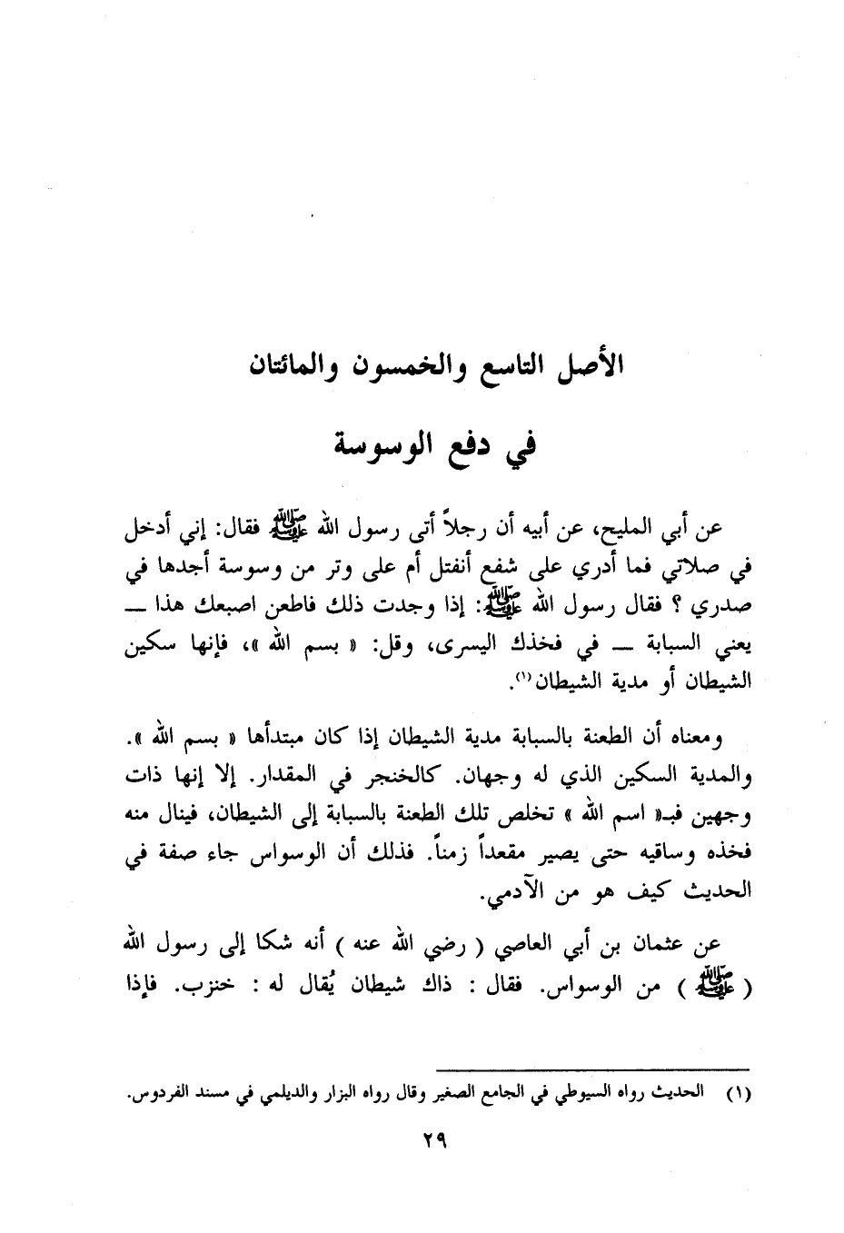 عَن عُثْمَان بن أبي العَاصِي رَضِي الله عَنهُ أَنه شكا إِلَى رَسُول الله صلى الله عَلَيْهِ وَسلم من الوسواس فَقَالَ ذَاك شَيْطَان يُقَال لَهُ خنزب فَإِذا