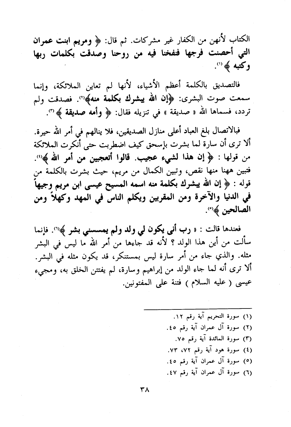 فَعندهَا قَالَت {رب أَنى يكون لي ولد وَلم يمسسني بشر} فَإِنَّمَا سَأَلت من أَيْن هَذَا الْوَلَد لِأَنَّهُ قد جاءها من أَمر الله مَا لَيْسَ فِي الْبشر مثله وَالَّذِي جَاءَ من أَمر سارة لَيْسَ بمستنكر قد يكون مثله فِي الْبشر أَلا ترى أَنه لما جَاءَ الْوَلَد من إِبْرَاهِيم وَسَارة لم يفتتن الْخلق بِهِ ومجيء عِيسَى عَلَيْهِ السَّلَام فتْنَة على المفتونين