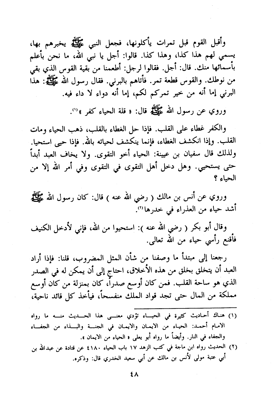 وَرُوِيَ عَن أنس بن مَالك رَضِي الله عَنهُ قَالَ كَانَ رَسُول الله صلى الله عَلَيْهِ وَسلم أَشد حَيَاء من الْعَذْرَاء فِي خدرها