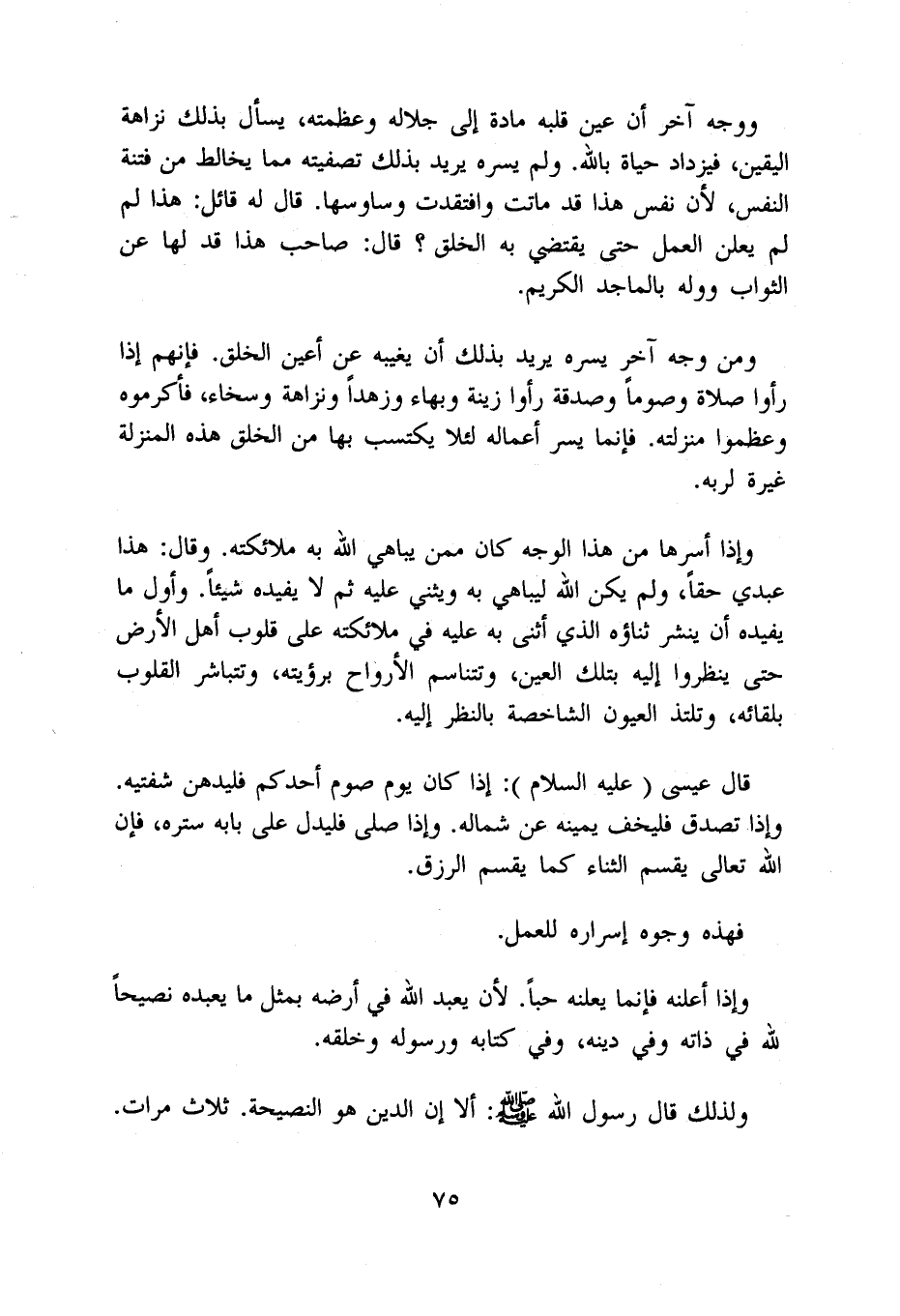 وَلذَلِك قَالَ رَسُول الله صلى الله عَلَيْهِ وَسلم أَلا إِن الدّين هُوَ النَّصِيحَة ثَلَاث مَرَّات