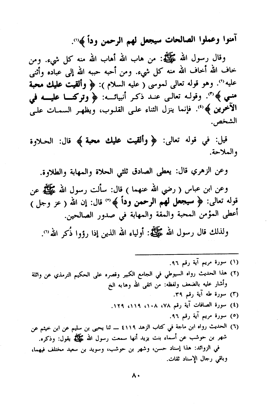 قيل فِي قَوْله تَعَالَى {وألقيت عَلَيْك محبَّة} قَالَ الْحَلَاوَة والملاحة