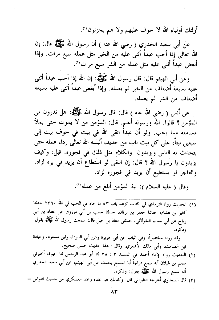 عَن أبي سعيد الْخُدْرِيّ رَضِي الله عَنهُ أَن رَسُول الله صلى الله عَلَيْهِ وَسلم قَالَ إِن الله تَعَالَى إِذا أحب عبدا أثنى عَلَيْهِ من الْخَيْر مثل عمله سبع مَرَّات وَإِذا أبْغض عبدا أثنى عَلَيْهِ مثل عمله من الشَّرّ سبع مَرَّات