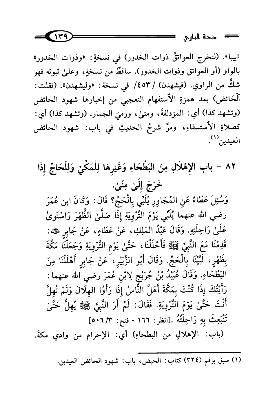 82 - بَابُ الإِهْلالِ مِنَ البَطْحَاءِ وَغَيْرِهَا، لِلْمَكِّيِّ وَلِلْحَاجِّ إِذَا خَرَجَ إِلَى مِنًى