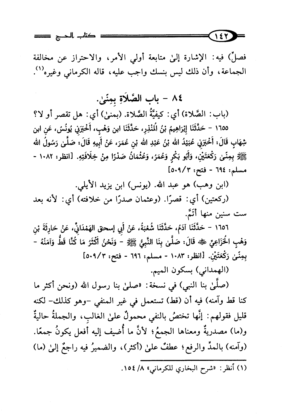 84 - بَابُ الصَّلاةِ بِمِنًى