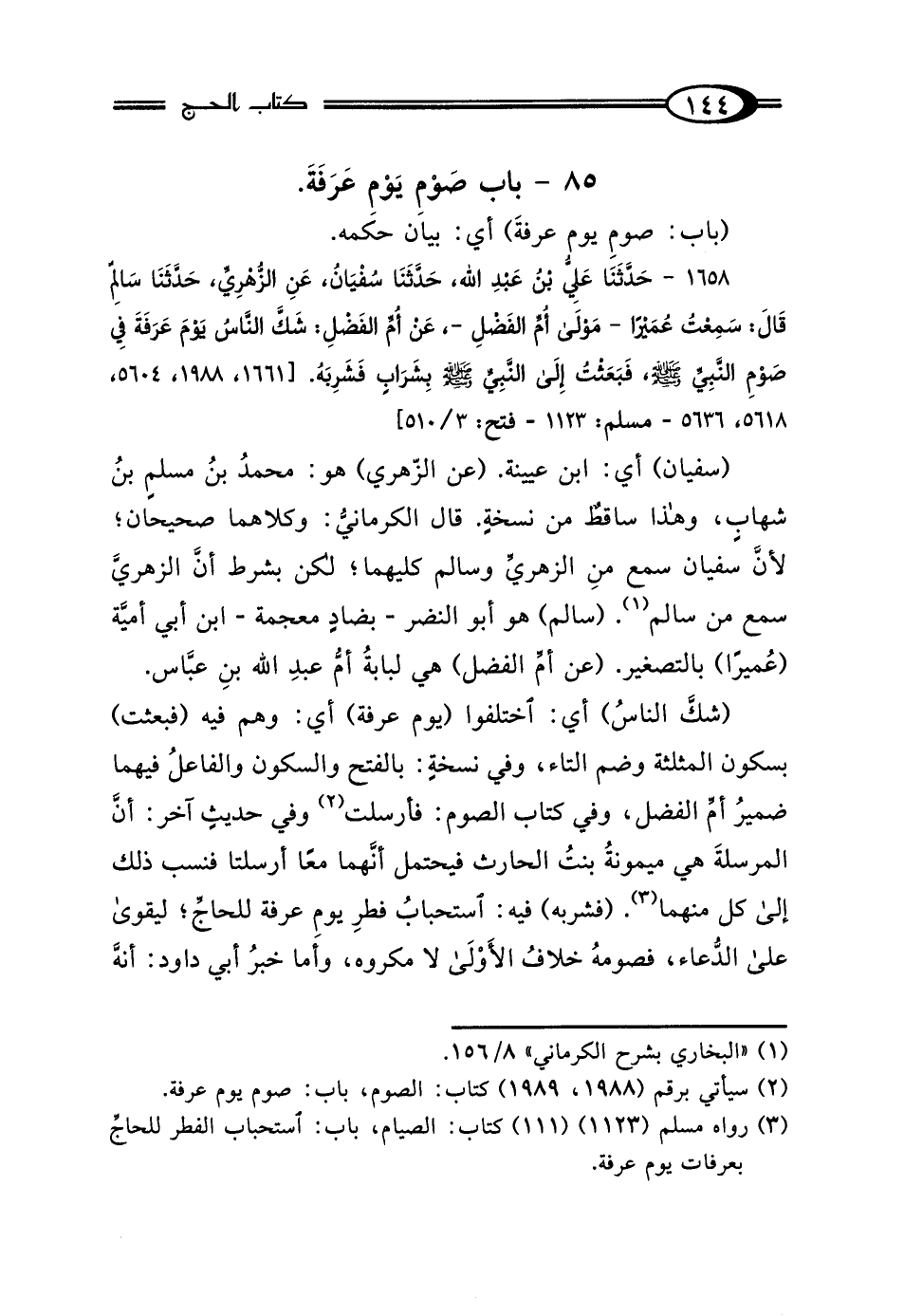 (¬3) رواه مسلم (1123) (111) كتاب: الصيام، باب: استحباب الفطر للحاجِّ بعرفات يوم عرفة.