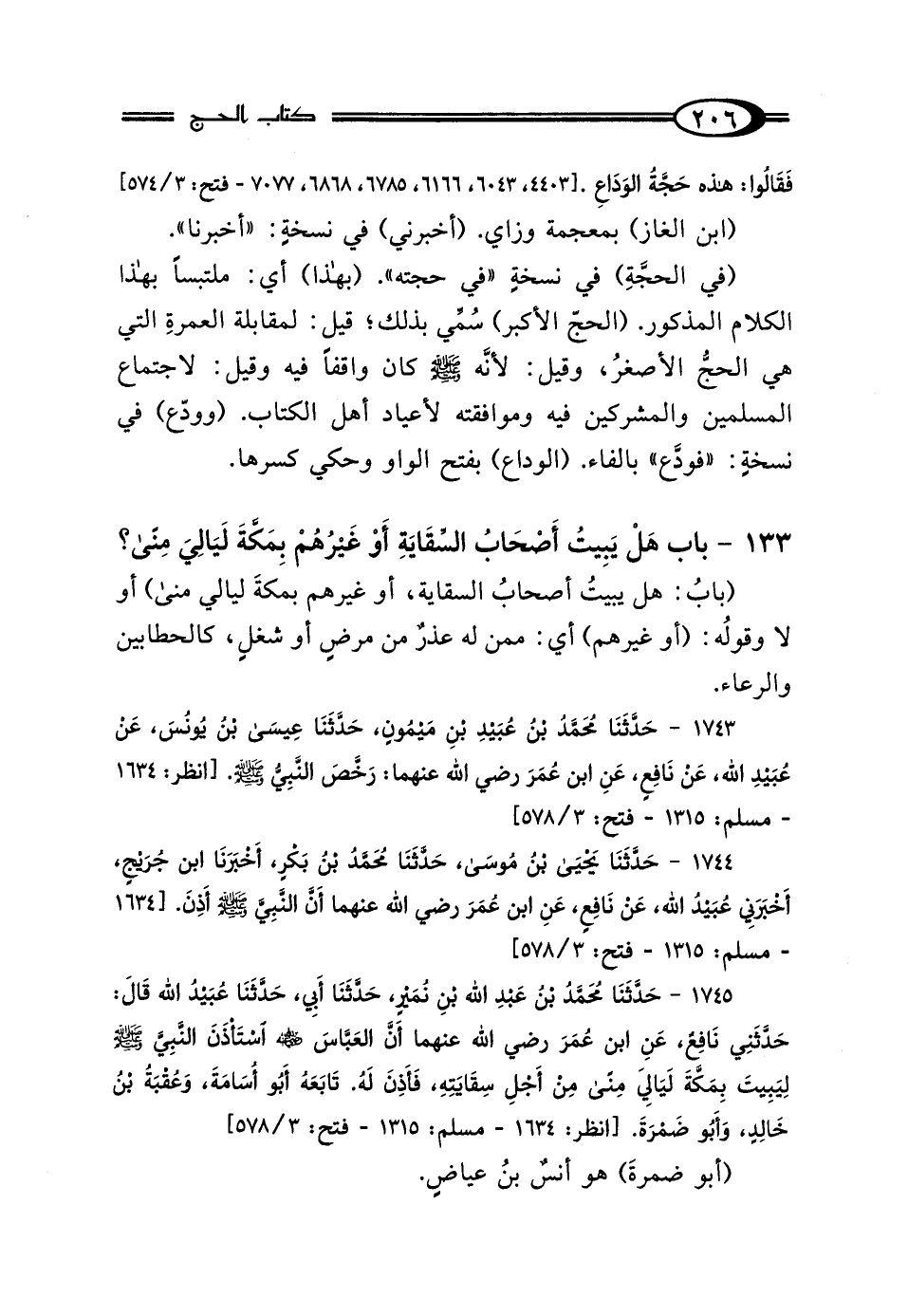 133 - بَابٌ: هَلْ يَبِيتُ أَصْحَابُ السِّقَايَةِ أَوْ غَيْرُهُمْ بِمَكَّةَ لَيَالِيَ مِنًى؟
