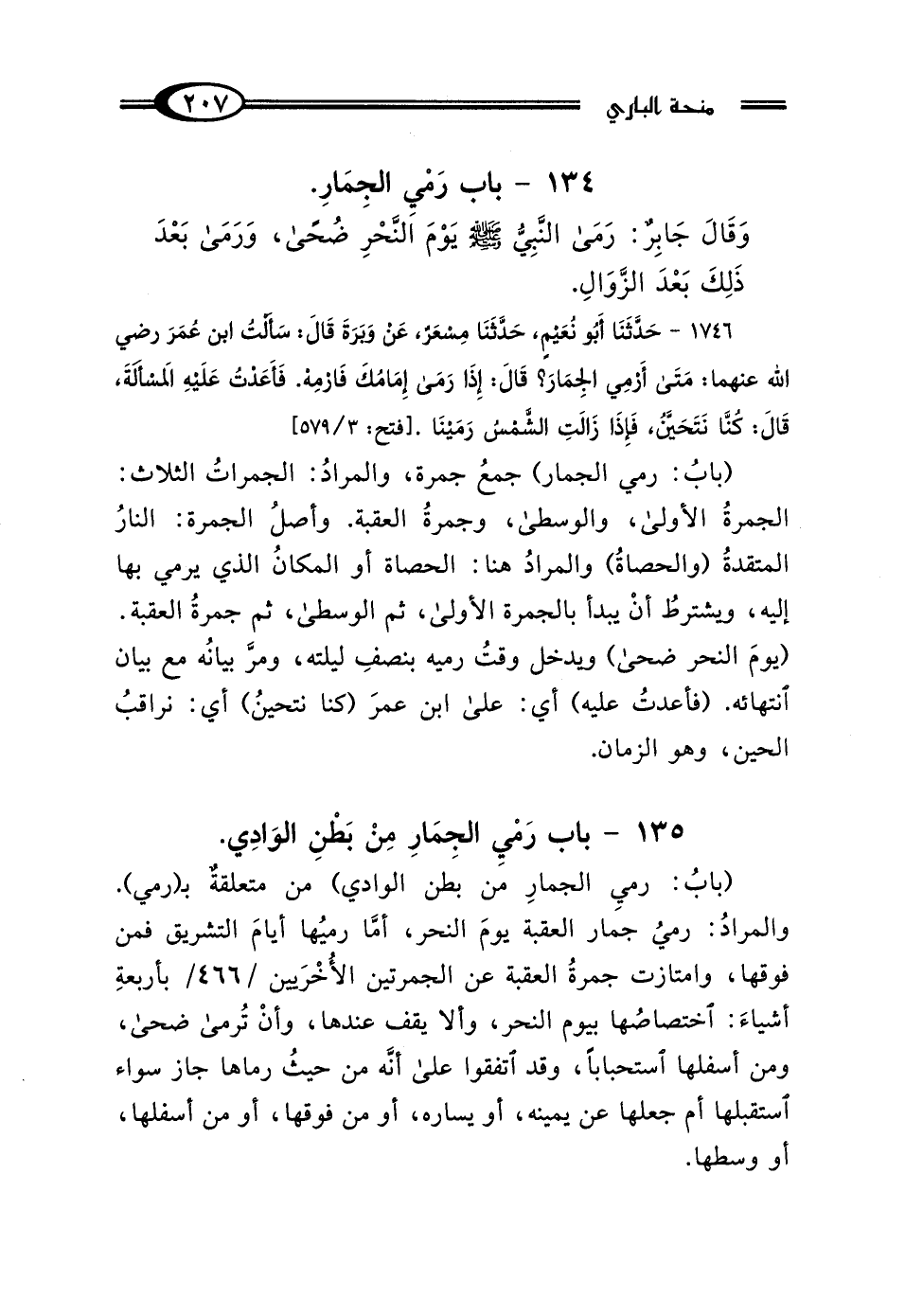 135 - بَابُ رَمْيِ الجِمَارِ مِنْ بَطْنِ الوَادِي