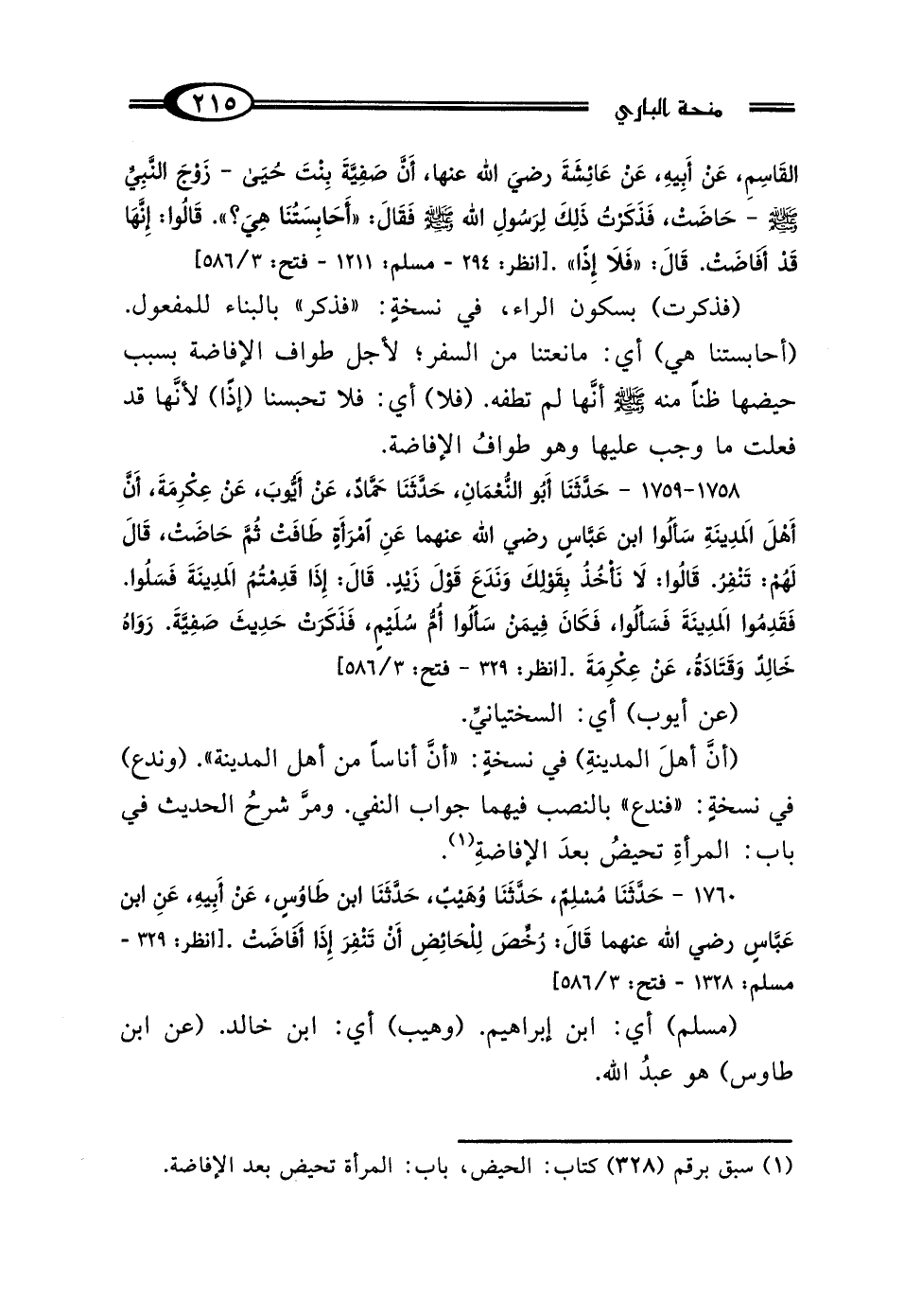 (¬1) سبق برقم (328) كتاب: الحيض، باب: المرأة تحيض بعد الإفاضة.