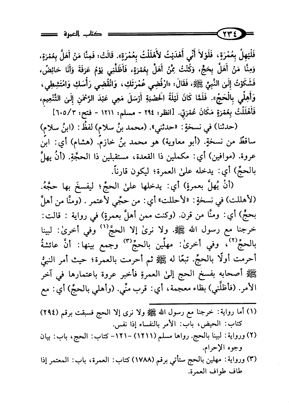 (¬3) ورواية: مهلين بالحج ستأتي برقم (1788) كتاب: العمرة، باب: المعتمر إذا طاف طواف العمرة.
