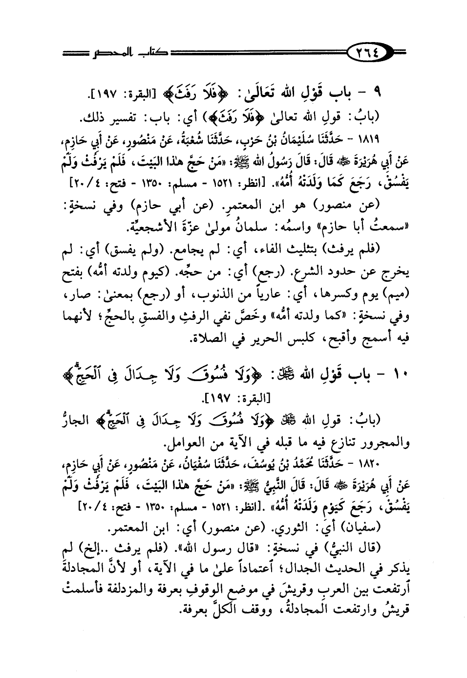 9 - بَابُ قَوْلِ اللَّهِ تَعَالى: {فَلَا رَفَثَ} [البقرة: 197]
