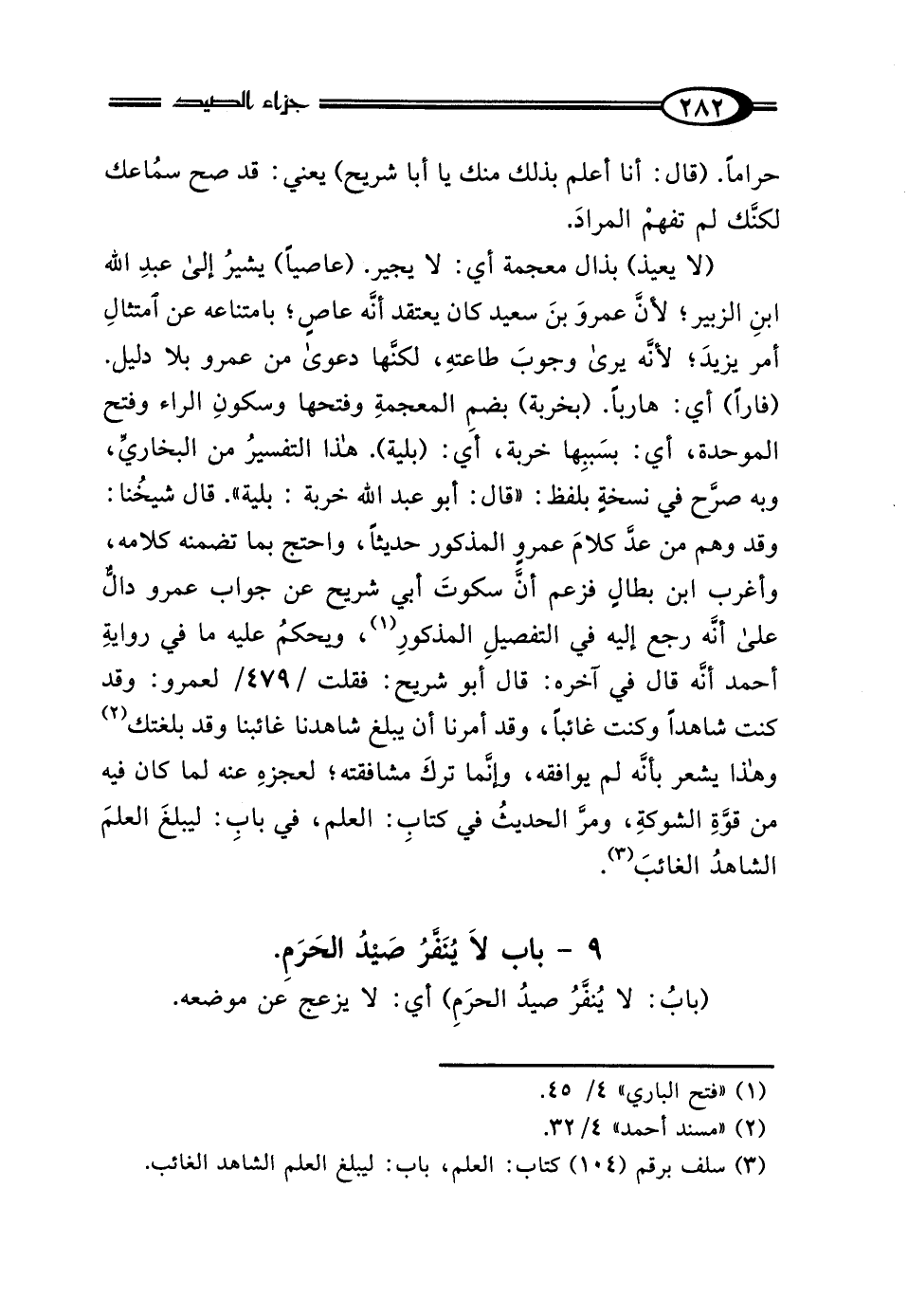 9 - بَابٌ: لاَ يُنَفَّرُ صَيْدُ الحَرَمِ