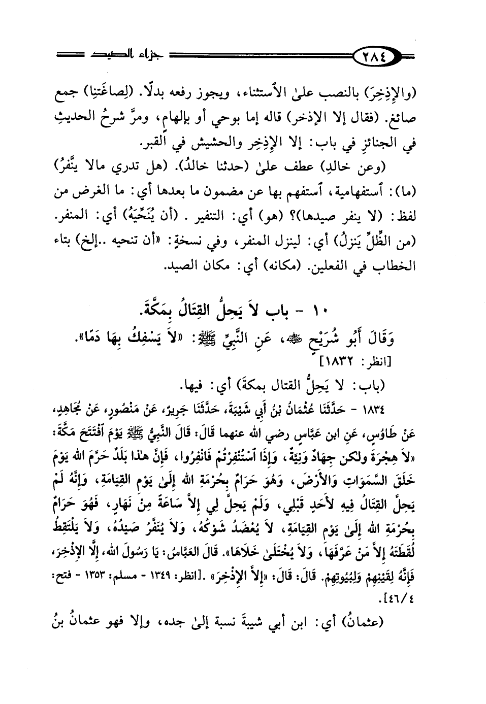 صائغ. (فقال إلا الإذخر) قاله إما بوحي أو بإلهامٍ، ومرَّ شرحُ الحديثِ في الجنائزِ في باب: إلا الإِذِخِر والحشيش في القبر.