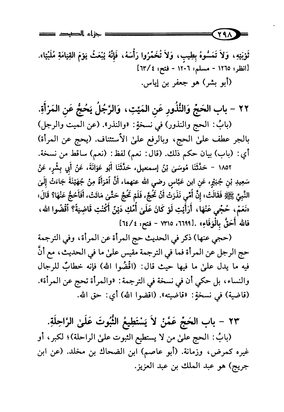 23 - بَابُ الحَجِّ عَمَّنْ لاَ يَسْتَطِيعُ الثُّبُوتَ عَلَى الرَّاحِلَةِ