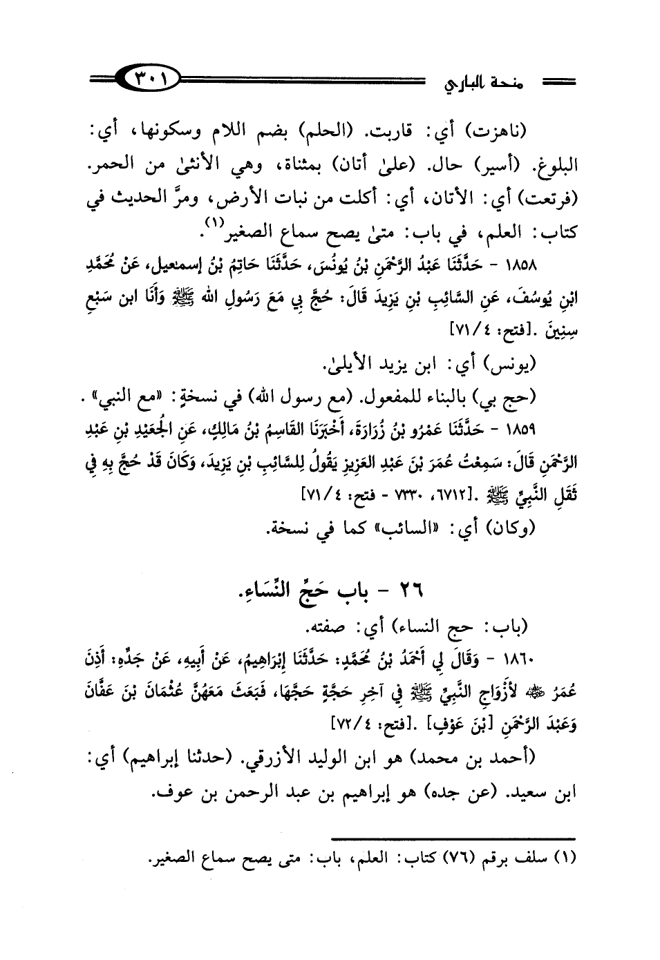 (¬1) سلف برقم (76) كتاب: العلم، باب: متى يصح سماع الصغير.