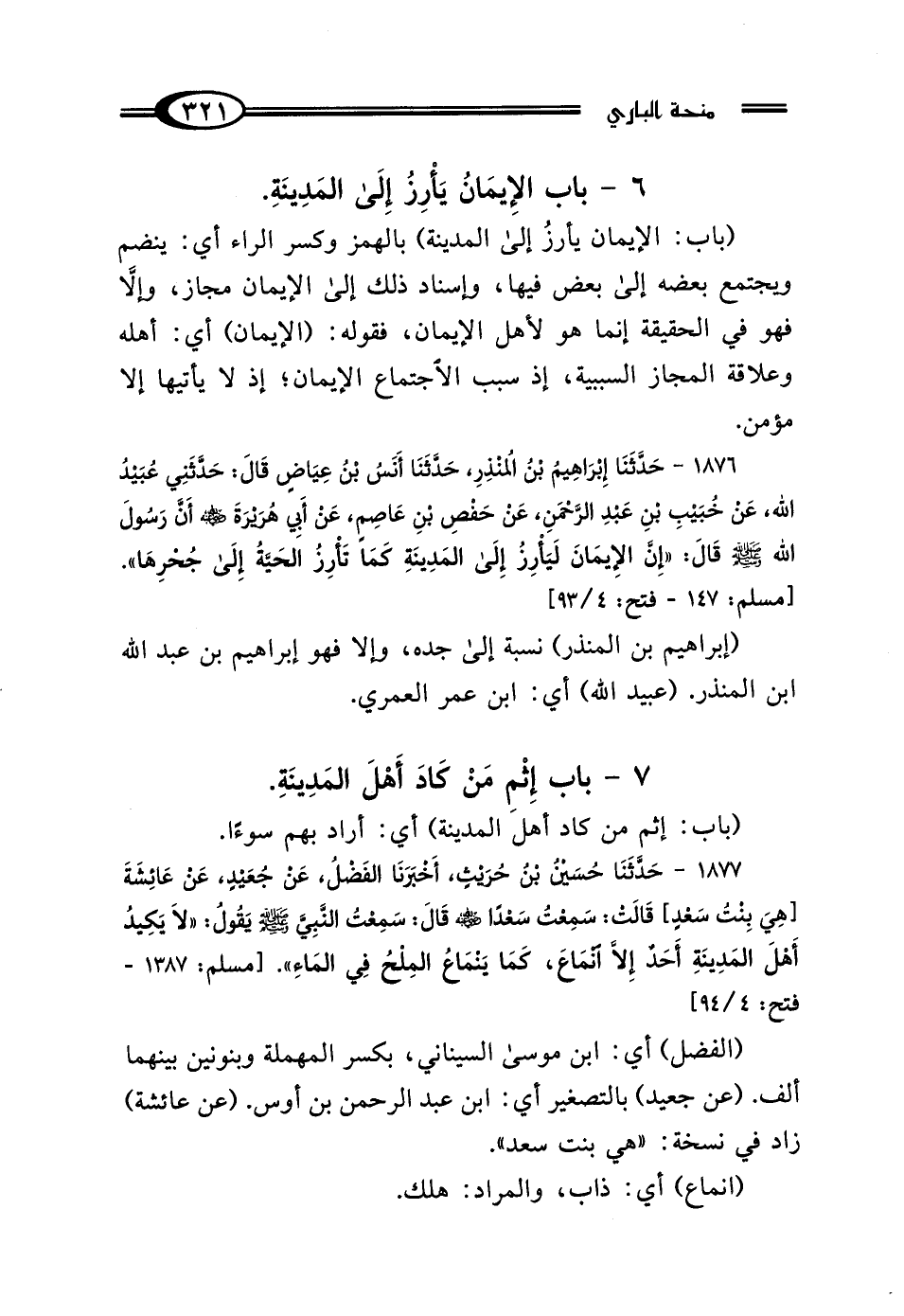 6 - بَابٌ: الإِيمَانُ يَأْرِزُ إِلَى المَدِينَةِ