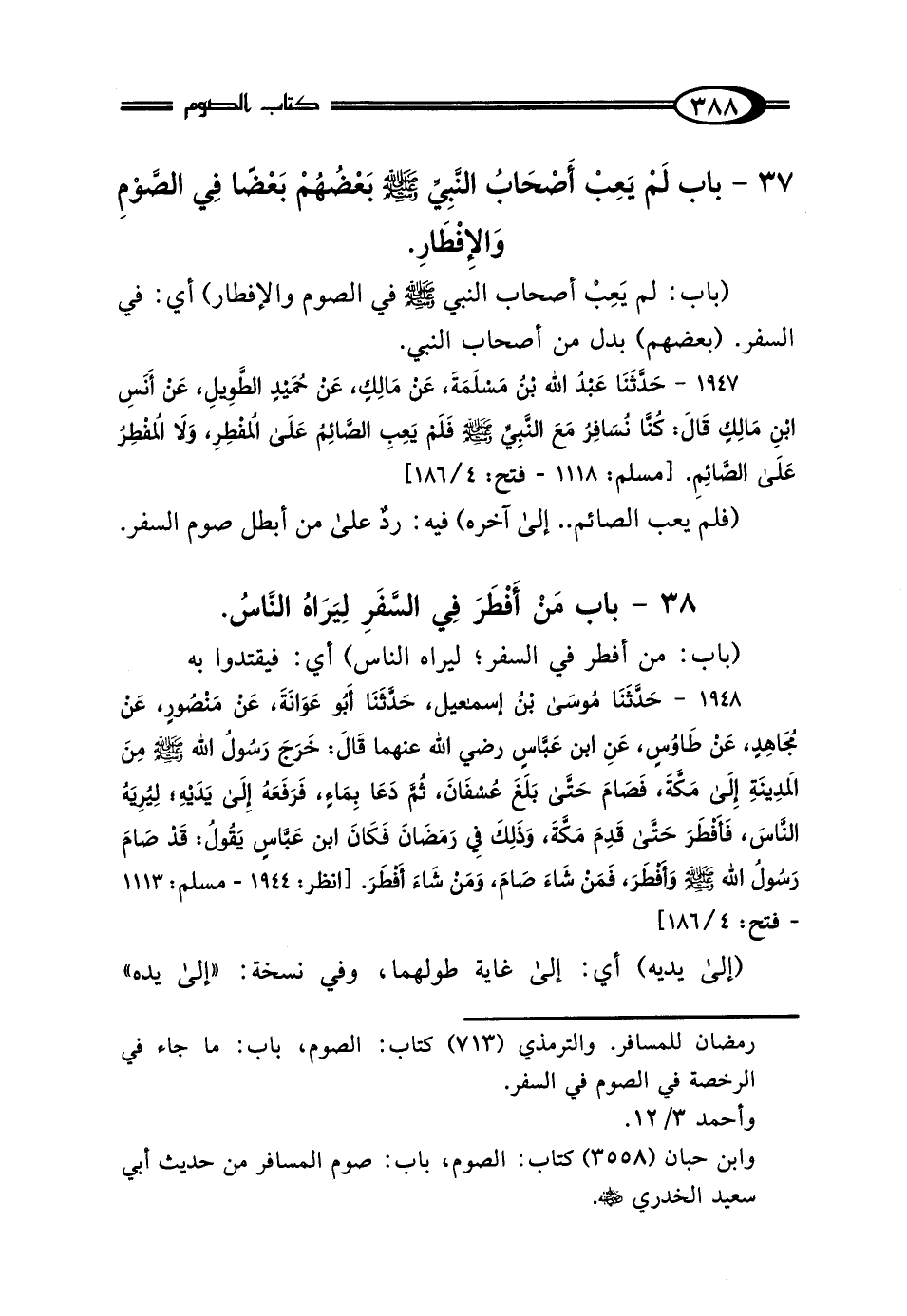 37 - بَابٌ: لَمْ يَعِبْ أَصْحَابُ النَّبِيِّ صَلَّى اللهُ عَلَيْهِ وَسَلَّمَ بَعْضُهُمْ بَعْضًا فِي الصَّوْمِ وَالإِفْطَارِ