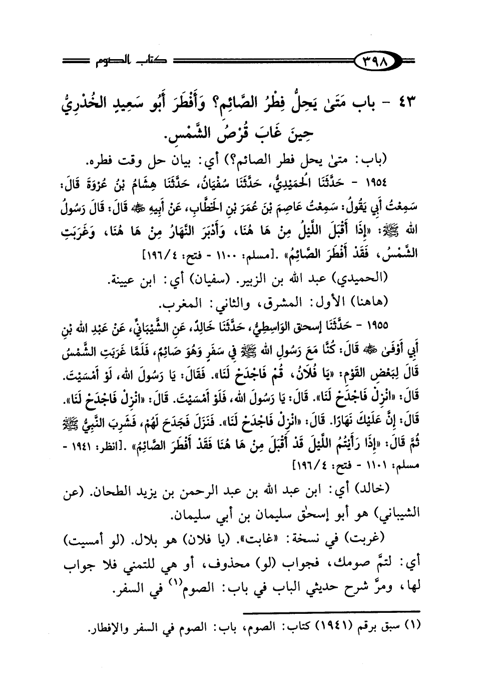 43 - بَابٌ: مَتَى يَحِلُّ فِطْرُ الصَّائِمِ؟