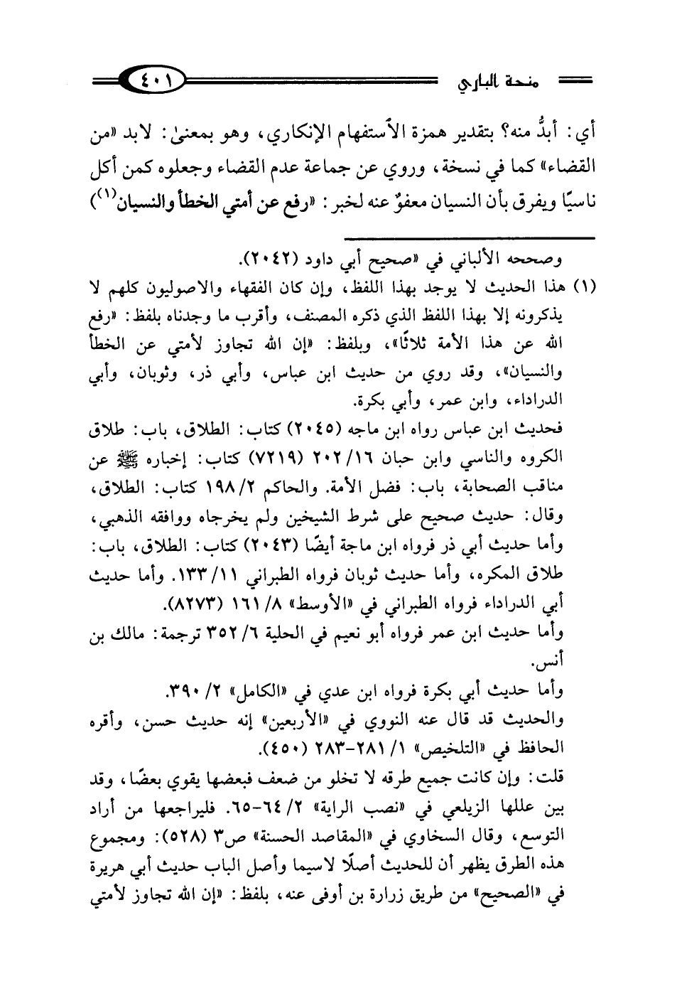 (¬1) هذا الحديث لا يوجد بهذا اللفظ، وإن كان الفقهاء والاصوليون كلهم لا يذكرونه إلا بهذا اللفظ الذي ذكره المصنف، وأقرب ما وجدناه بلفظ: "رفع الله عن هذا الأمة ثلاثًا"، وبلفظ: "إن الله تجاوز لأمتي عن الخطأ والنسيان"، وقد روي من حديث ابن عباس، وأبي ذر، وثوبان، وأبي الدراداء، وابن عمر، وأبي بكرة.