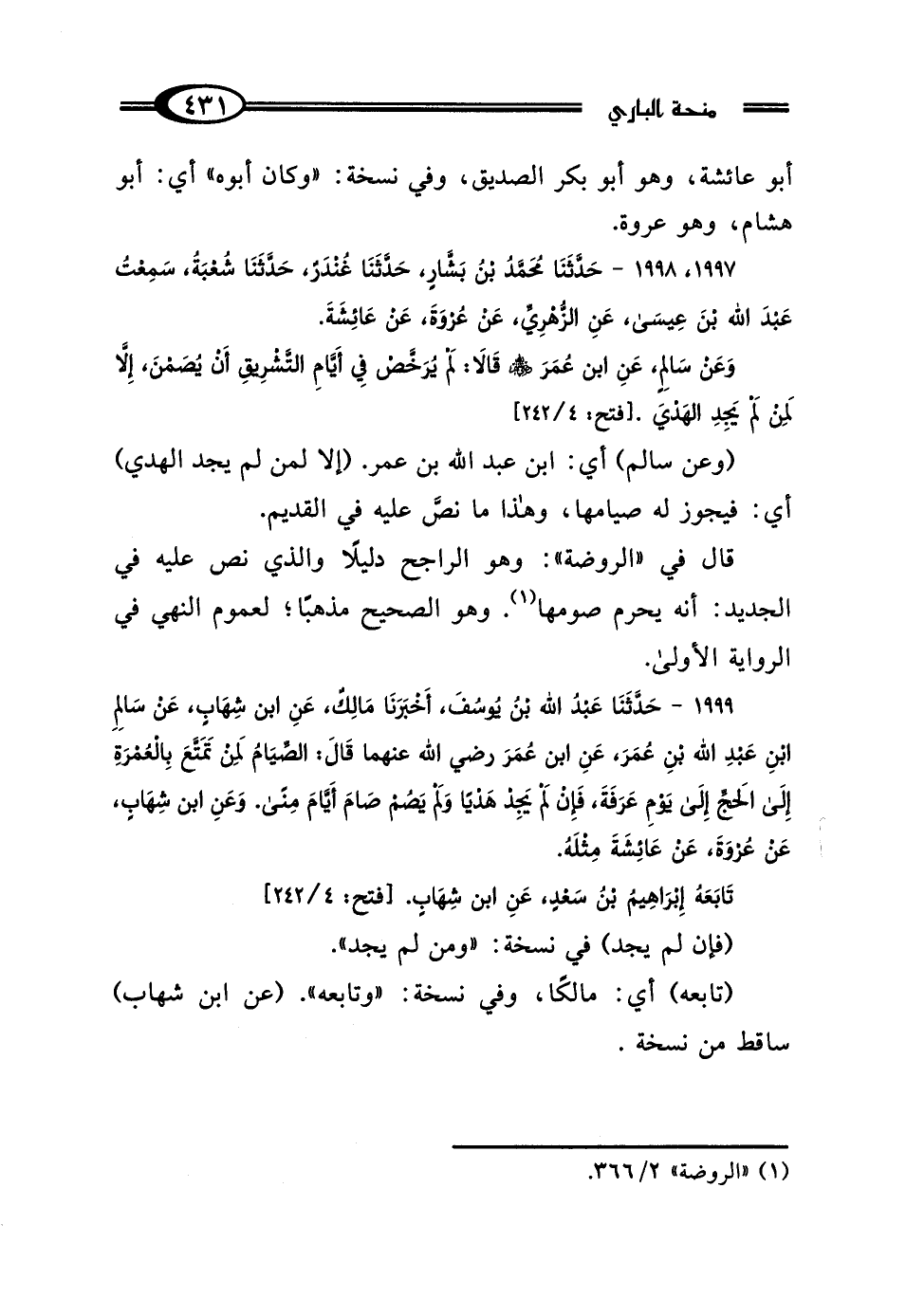 1997، 1998 - حَدَّثَنَا مُحَمَّدُ بْنُ بَشَّارٍ، حَدَّثَنَا غُنْدَرٌ، حَدَّثَنَا شُعْبَةُ، سَمِعْتُ عَبْدَ اللَّهِ بْنَ عِيسى بْنِ أَبِي لَيْلَى، عَنِ الزُّهْرِيِّ، عَنْ عُرْوَةَ، عَنْ عَائِشَةَ، وَعَنْ سَالِمٍ، عَنِ ابْنِ عُمَرَ رَضِيَ اللَّهُ عَنْهُمْ، قَالا: "لَمْ يُرَخَّصْ فِي أَيَّامِ التَّشْرِيقِ أَنْ يُصَمْنَ، إلا لِمَنْ لَمْ يَجِدِ الهَدْيَ".