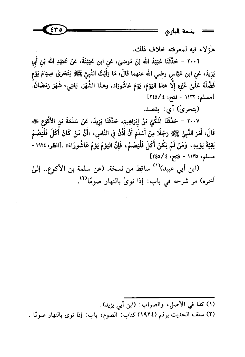 2006 - حَدَّثَنَا عُبَيْدُ اللَّهِ بْنُ مُوسَى، عَنِ ابْنِ عُيَيْنَةَ، عَنْ عُبَيْدِ اللَّهِ بْنِ أَبِي يَزِيدَ، عَنِ ابْنِ عَبَّاسٍ رَضِيَ اللَّهُ عَنْهُمَا، قَال: "مَا رَأَيْتُ النَّبِيَّ صَلَّى اللهُ عَلَيْهِ وَسَلَّمَ يَتَحَرَّى صِيَامَ يَوْمٍ فَضَّلَهُ عَلَى غَيْرِهِ إلا هَذَا اليَوْمَ، يَوْمَ عَاشُورَاءَ، وَهَذَا الشَّهْرَ يَعْنِي شَهْرَ رَمَضَانَ".
