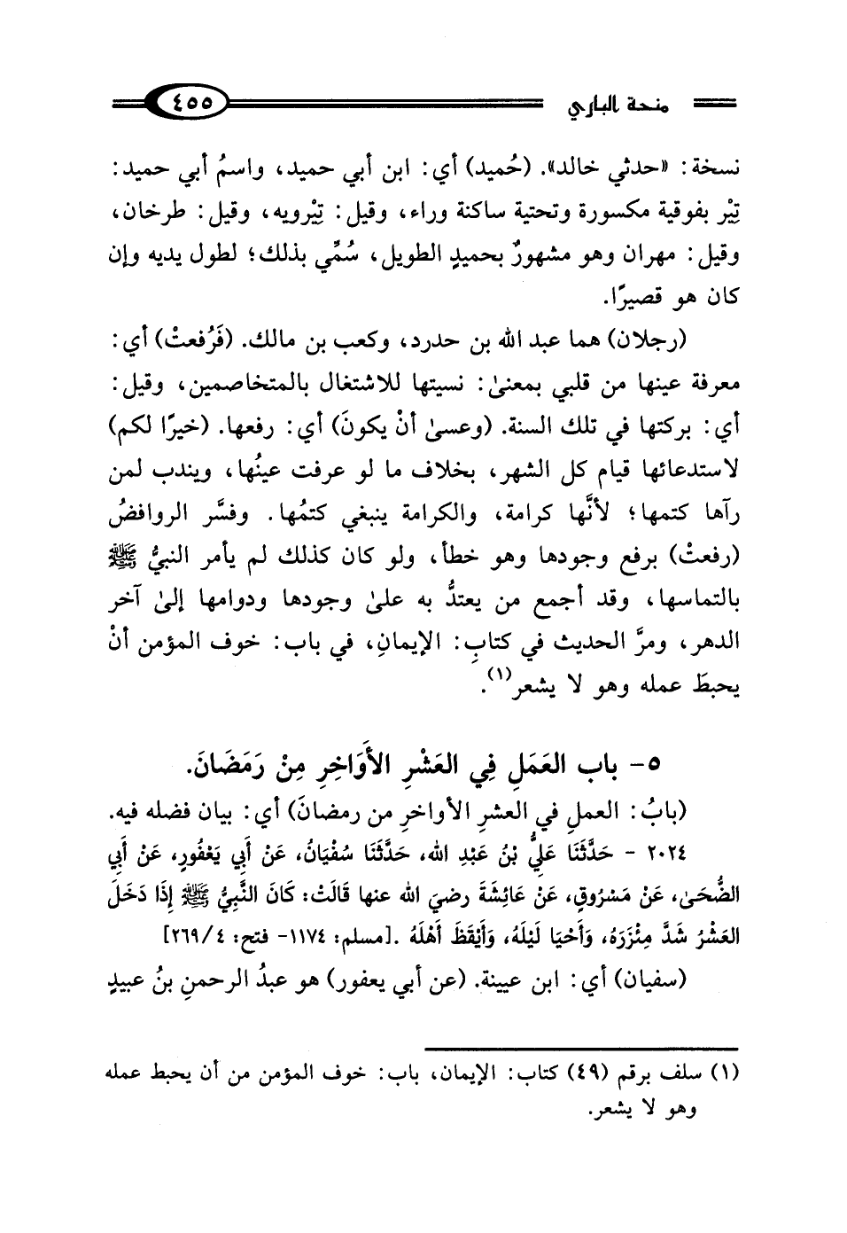 5 - بَابُ العَمَلِ فِي العَشْرِ الأَوَاخِرِ مِنْ رَمَضَانَ