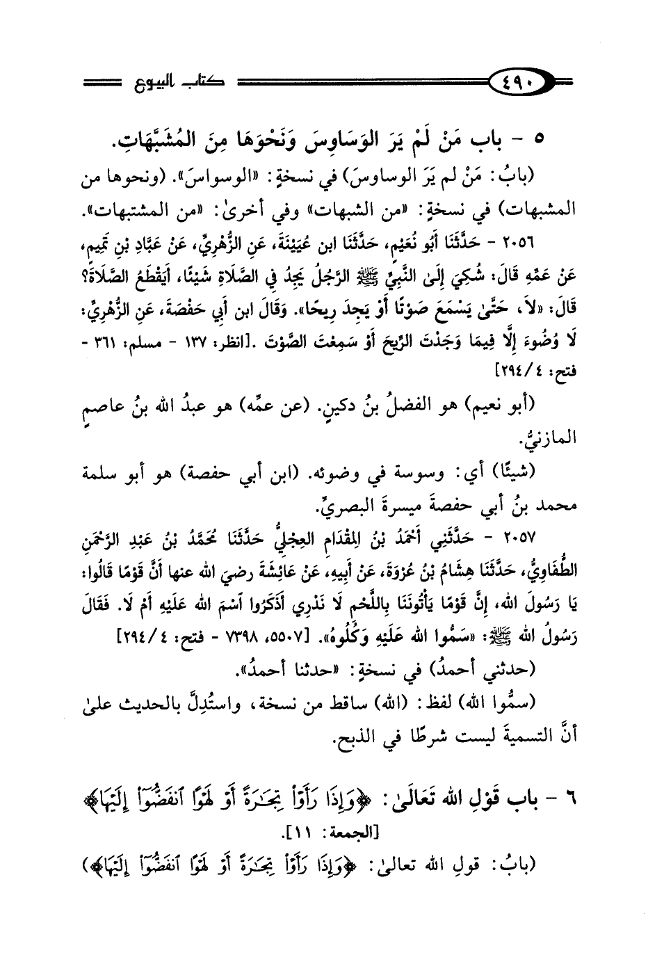 (بابُ: مَنْ لم يَرَ الوساوسَ) في نسخةٍ: "الوسواسَ". (ونحوها من المشبهات) في نسخةٍ: "من الشبهات" وفي أخرى: "من المشتبهات".
