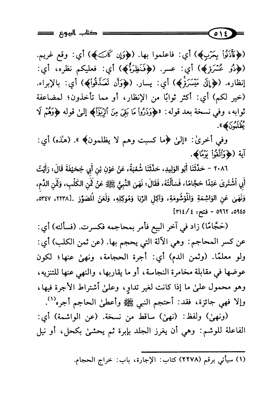 (¬1) سيأتي برقم (2278) كتاب: الإجارة، باب: خراج الحجام.