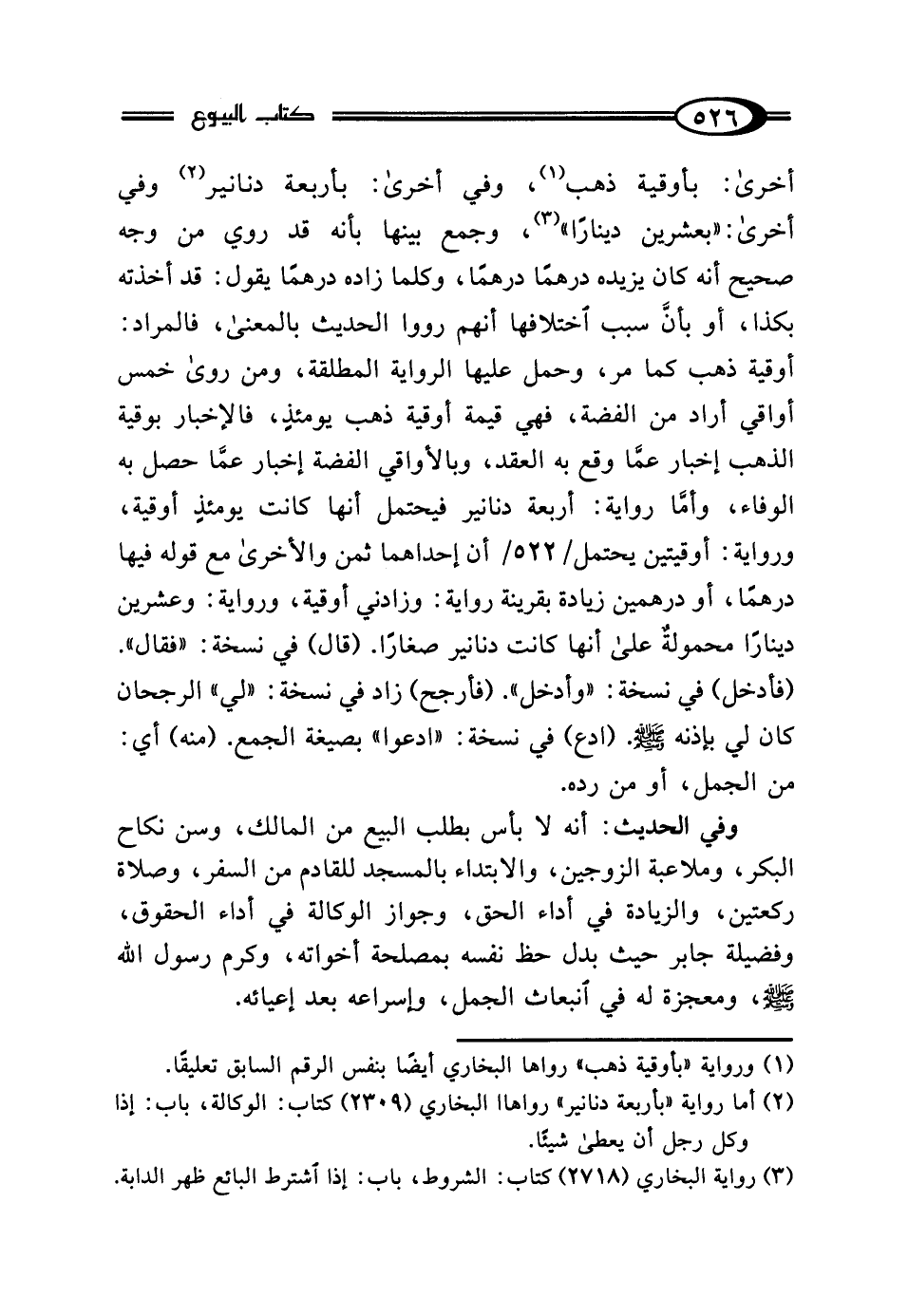 (¬1) ورواية "بأوقية ذهب" رواها البخاريّ أيضًا بنفس الرقم السابق تعليقًا.