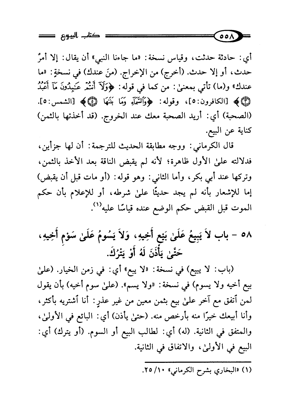 (¬1) "البخاري بشرح الكرماني"10/ 25.