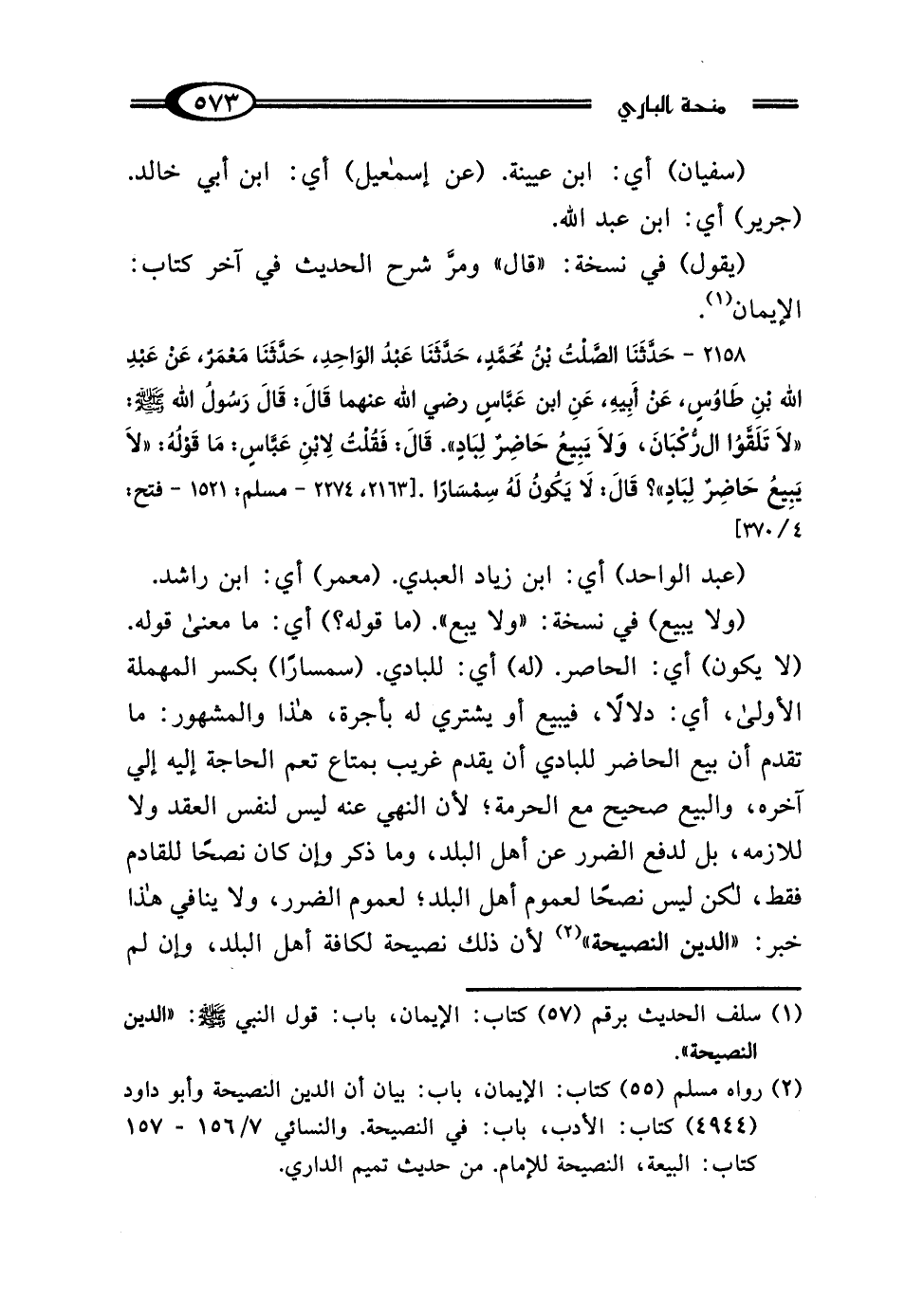 (¬1) سلف الحديث برقم (57) كتاب: الإيمان، باب: قول النبي - صلى الله عليه وسلم -: "الدين النصيحة".