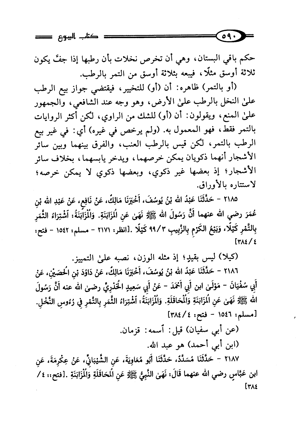 حكم باقي البستان، وهي أن تخرص نخلات بأن رطبها إذا جفَّ يكون ثلاثة أوسق مثلًا، فيبعه بثلاثة أوسق من التمر بالرطب.