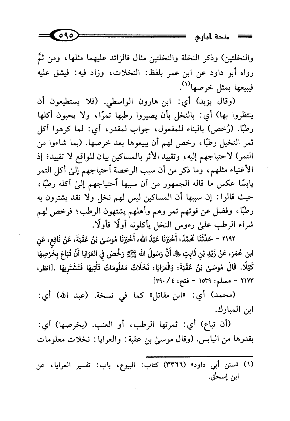 (¬1) "سنن أبي داود" (3366) كتاب: البيوع، باب: تفسير العرايا، عن ابن إسحاق.