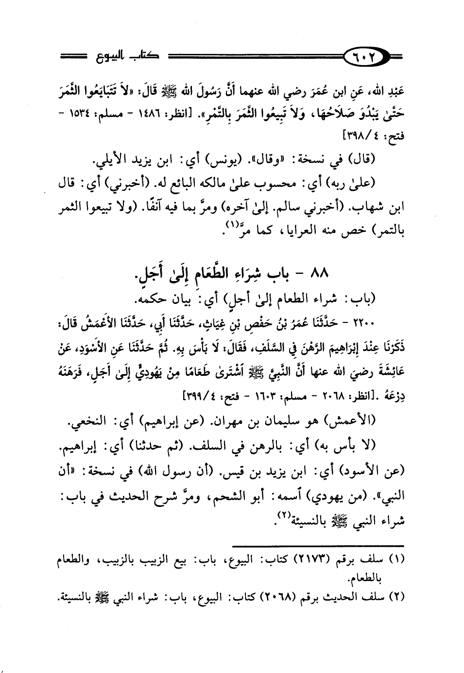 (¬2) سلف الحديث برقم (2068) كتاب: البيوع، باب: شراء النبي - صلى الله عليه وسلم - بالنسيئة.