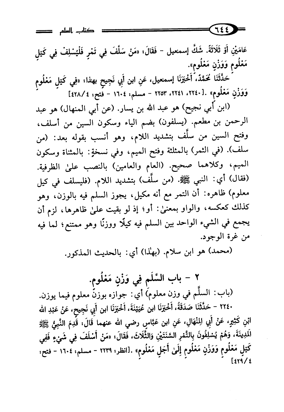 2 - بَابُ السَّلَمِ فِي وَزْنٍ مَعْلُومٍ