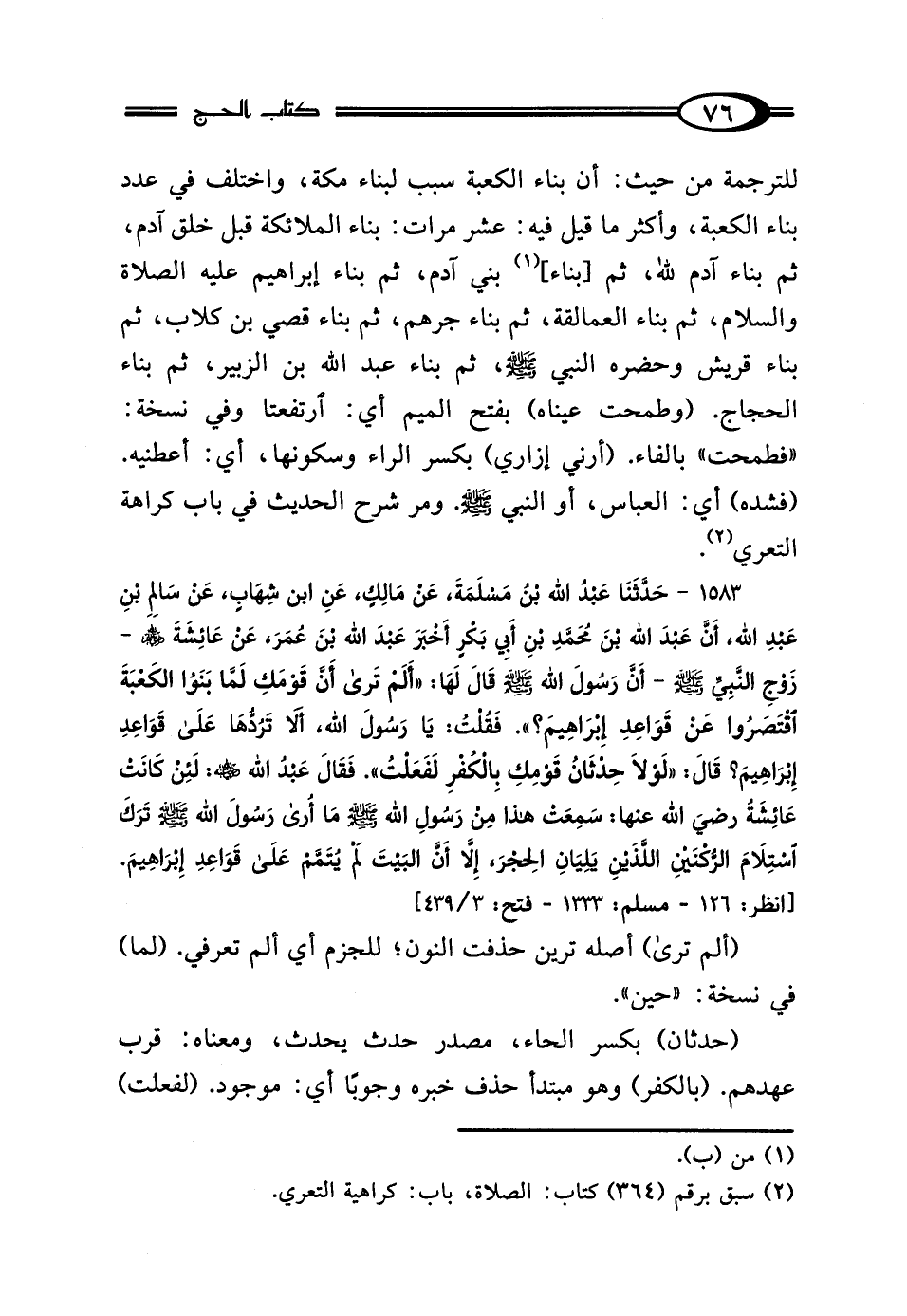 للترجمة من حيث: أن بناء الكعبة سبب لبناء مكّة، واختلف في عدد بناء الكعبة، وأكثر ما قيل فيه: عشر مرات: بناء الملائكة قبل خلق آدم، ثمّ بناء آدم لله، ثمّ [بناء] (¬1) بني آدم، ثمّ بناء إبراهيم عليه الصّلاة والسلام، ثمّ بناء العمالقة، ثمّ بناء جرهم، ثمّ بناء قصي بن كلاب، ثمّ بناء قريش وحضره النَّبيّ - صلى الله عليه وسلم -، ثمّ بناء عبد الله بن الزُّبير، ثمّ بناء الحجاج. (وطمحت عيناه) بفتح الميم أي: ارتفعتا وفي نسخة: "فطمحت" بالفاء. (أرني إزاري) بكسر الراء وسكونها، أي: أعطنيه. (فشده) أي: العباس، أو النَّبيّ - صلى الله عليه وسلم -. ومر شرح الحديث في باب كراهة التعري (¬2).