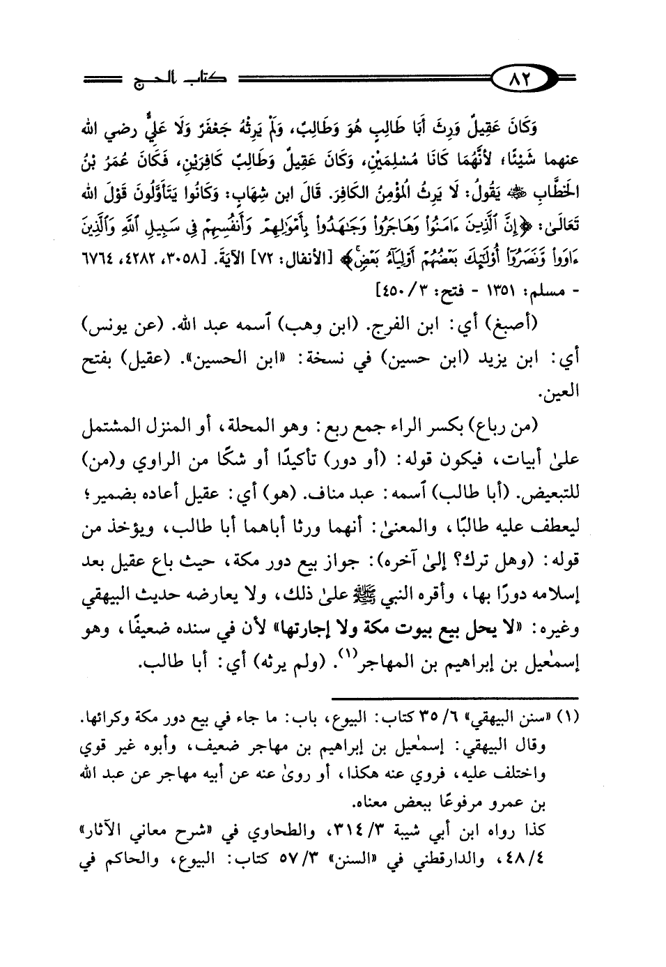 (¬1) "سنن البيهقي" 6/ 35 كتاب: البيوع، باب: ما جاء في بيع دور مكّة وكرائها.