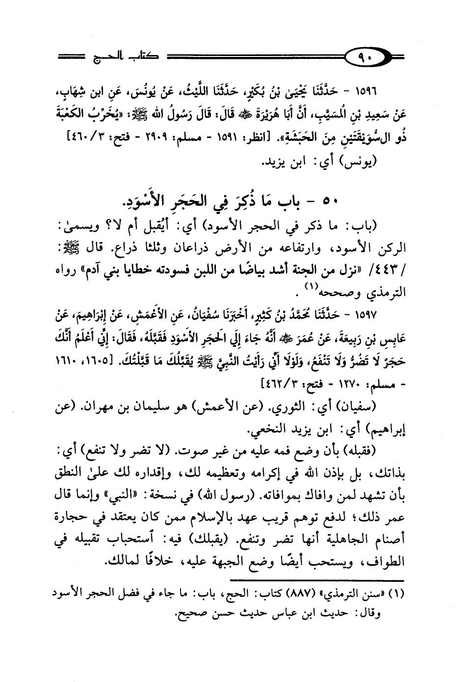 (¬1) "سنن التّرمذيّ" (887) كتاب: الحجِّ، باب: ما جاء في فضل الحجر الأسود وقال: حديث ابن عبّاس حديث حسن صحيح.