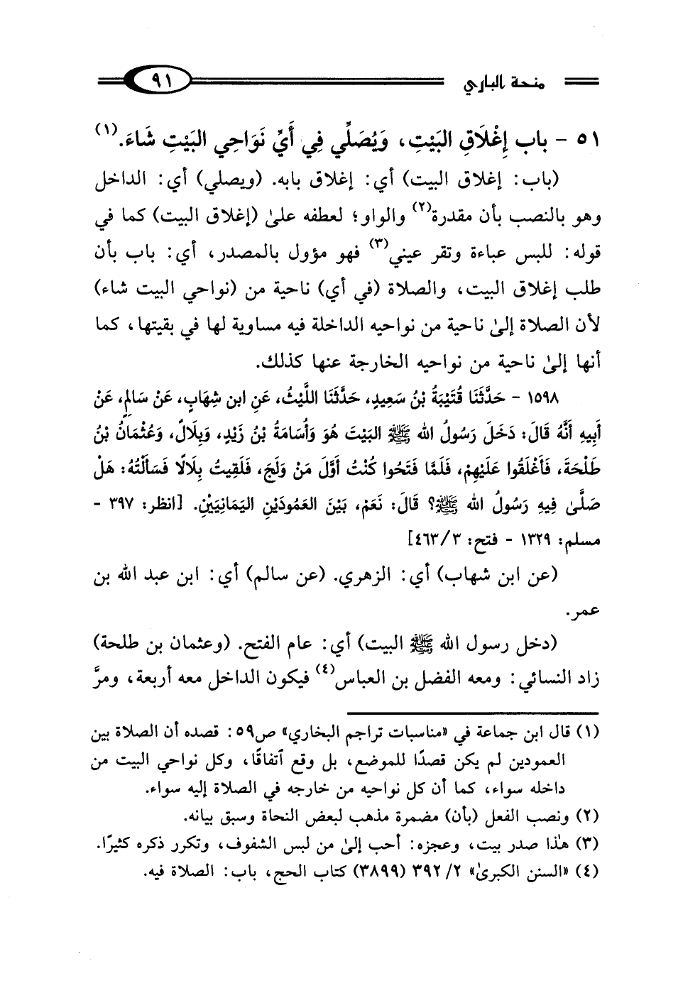 51 - بَابُ إِغْلاقِ البَيْتِ، وَيُصَلِّي فِي أَيِّ نَوَاحِي البَيْتِ شَاءَ (¬1).